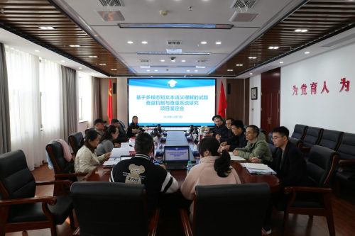 12月25日,由我院党委副书记、院长徐峰主持的教育部教育考试院国家教育考试科研规划2021年度重点课题《基于多模态短文本语义理解的试题查重机制及查重系统研究》(课题编号GJK2021019)结题鉴定会在我院召开。鉴定组专家有南昌大学物理与材料学院韩道福教授、华东交通大学信息工程学院曾伟副教授、南昌工程学院水利工程学院张红梅副教授、九江市同文中学正高级、特级教师刘昱华,鉴定组组长由江西师范大学计算机信息工程学院甘登文教授担任。会议由我院命题处副处长郑浪主持。